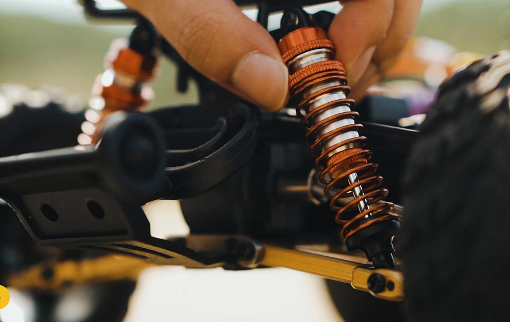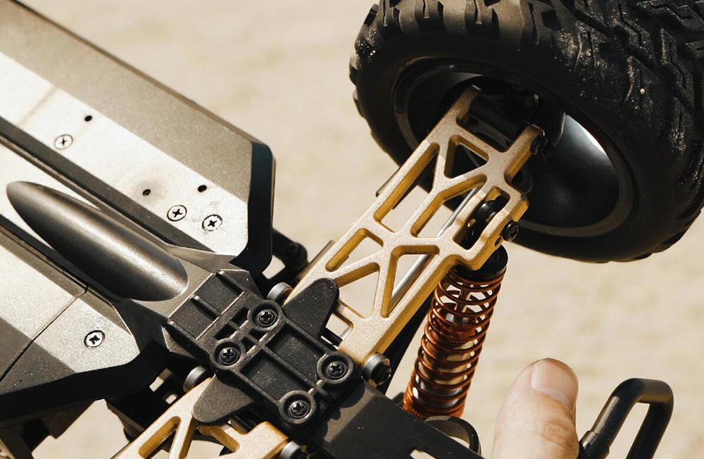 1. Система независимой четырехколесной подвески; имитация металлических амортизаторов; регулируемая конструкция тяговых стержней всего автомобиля;